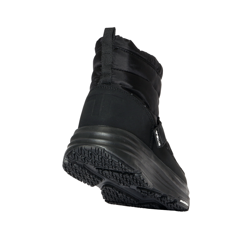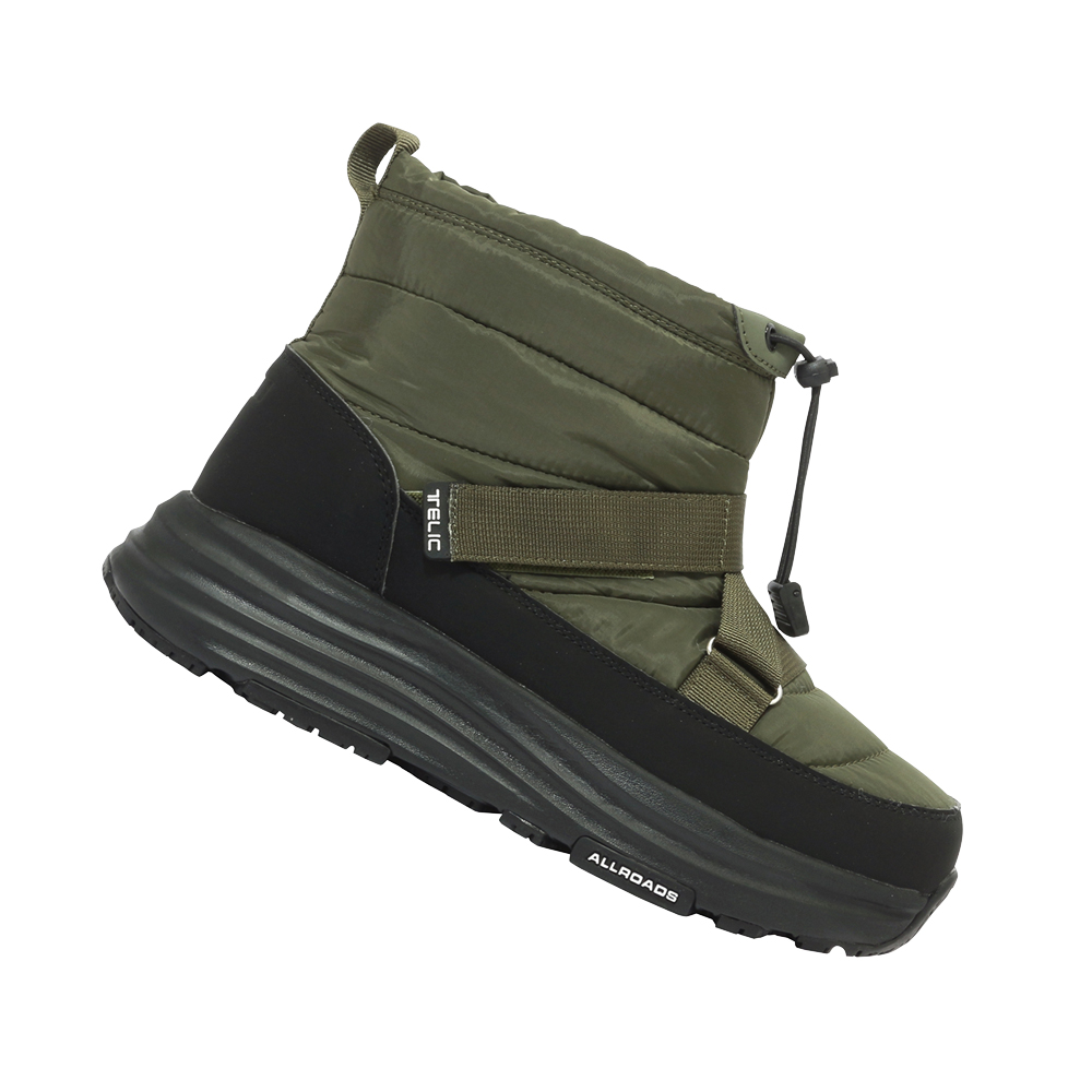 TELICのリカバリー機能はそのままに、防水・防滑性能を搭載した秋冬向けキルティングブーツ。 内側はボア生地で、冷える季節もあたたかく快適に過ごせます。 独自配合ラバーの「ALLROADS」アウトソールは滑りにくく、軽量でクッション性の高い「RECOVERSOFT」ミッドソールが歩行をサポート。インソールは、足裏で地面をとらえる感覚を生む「フィンガーフリー」構造に、抗菌防臭機能をプラス。 Z型ベルトでフィット感を調整でき、履き口は広めで着脱もスムーズです。 静水6cm・4時間の防水試験をクリアし、雨や雪の日でも安心。秋冬の街歩きからアウトドアまで頼れる一足です。