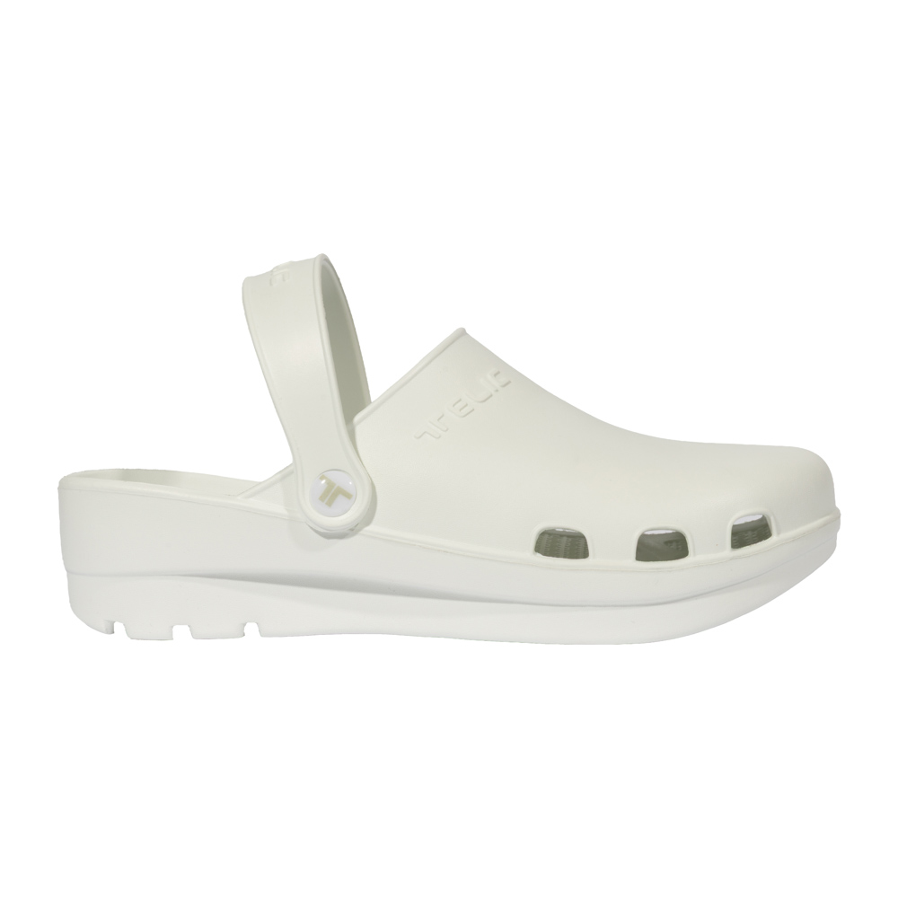 「医療従事者向けのTELICが欲しい」という声により誕生したサボタイプ。シンプルなデザインは普段使いにもぴったりで、つま先を覆うクローズトップタイプは、夏は素足で、冬はソックスを合わせることで1年中活躍します。3WAYタイプで、ストラップを後ろにすればより安定感のある履き心地。またストラップを外して着用することも可能。 高いクッション性とすぐれたホールド効果を持つ厚底タイプです。