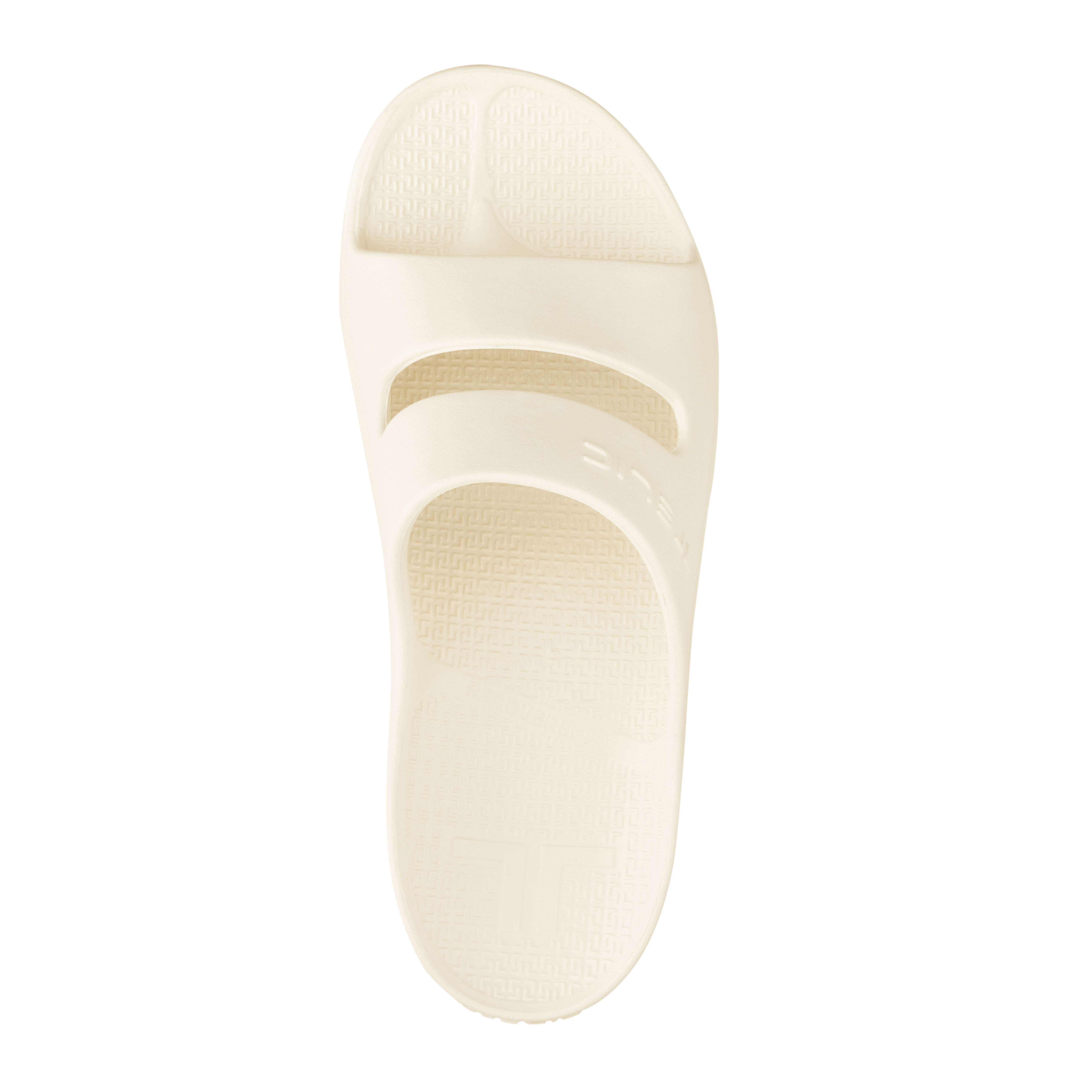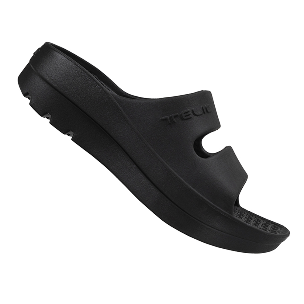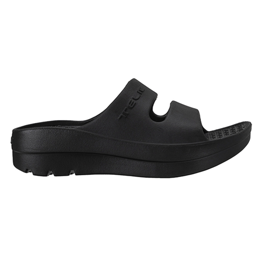 It features a strong double strap and a thick sole. The thick sole combines high cushioning and a trendy design. The gently curved heel wraps around the arch of the foot, providing excellent support.