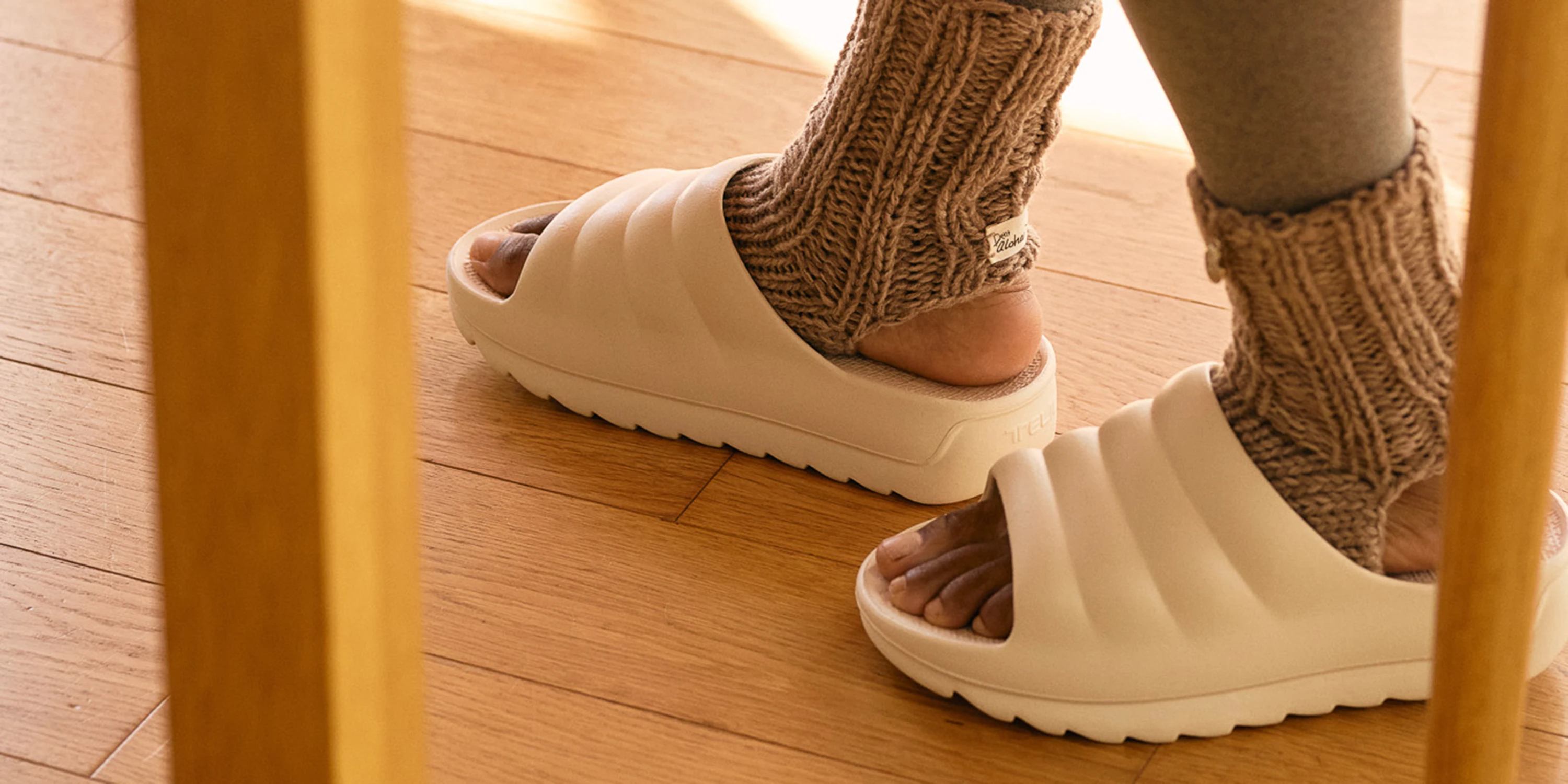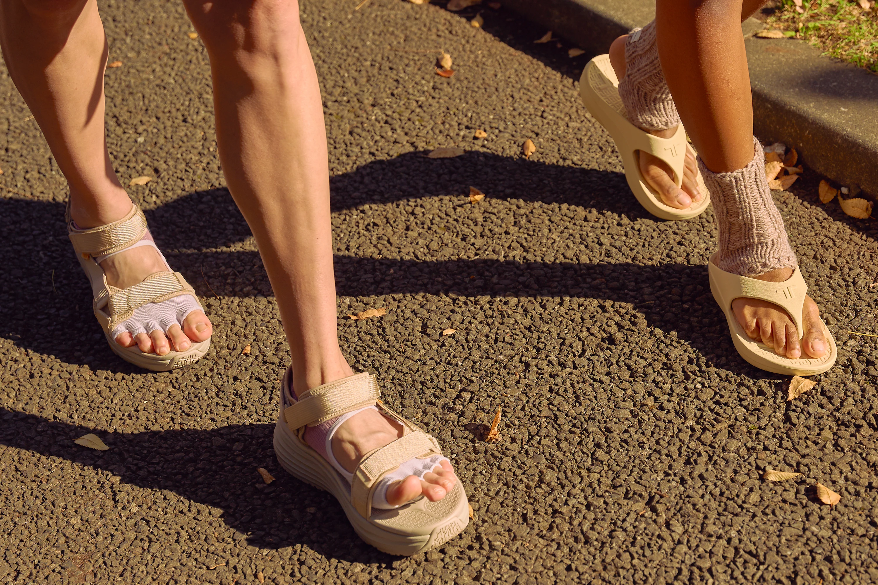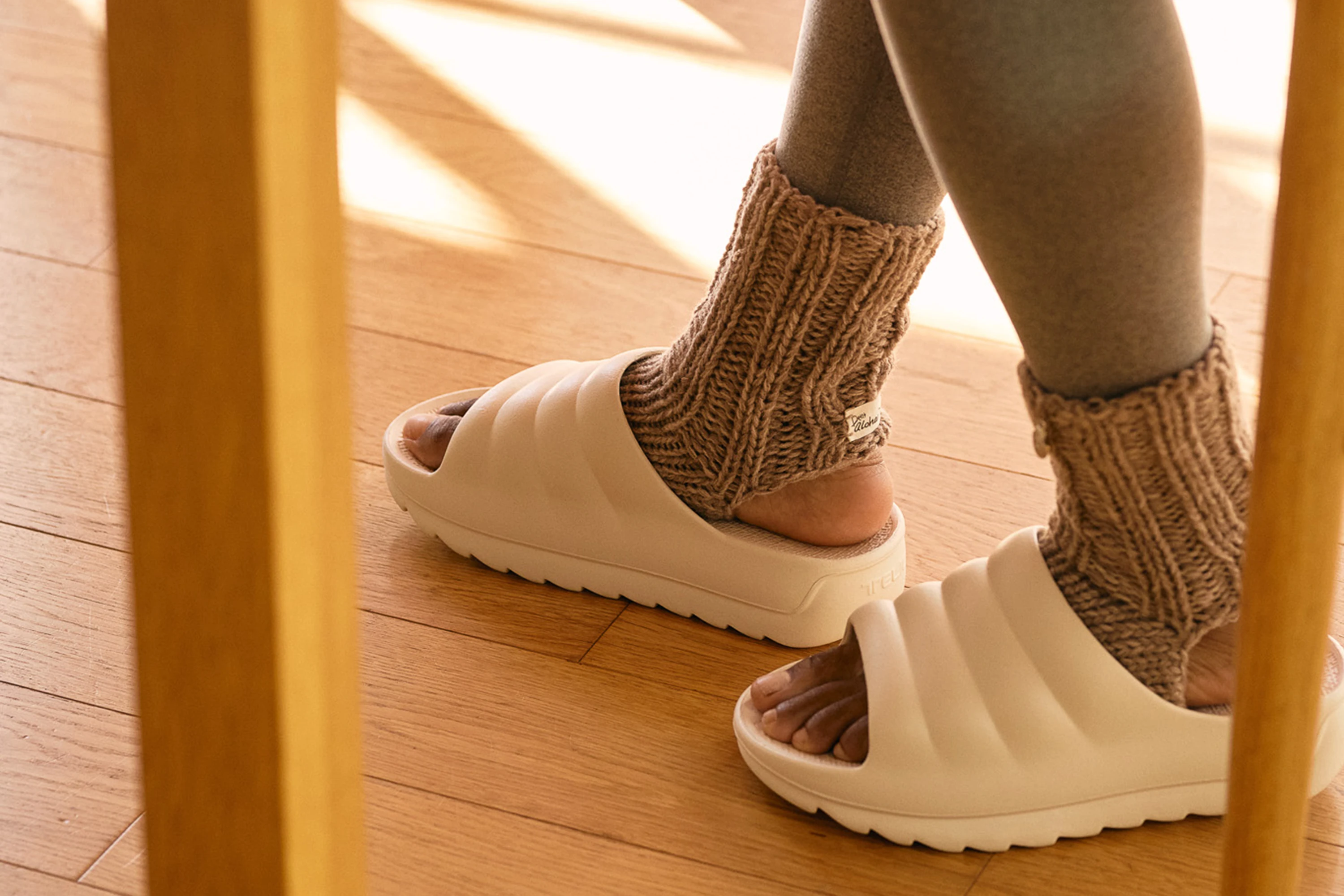 TELICのフットウェアは、軽量でありながらも履いていることを忘れるほどの快適さを提供し、素足に心地よくフィットします。その柔らかい質感が、トレーニングやアクティビティの後に疲れた全身を足元から解放してくれます。