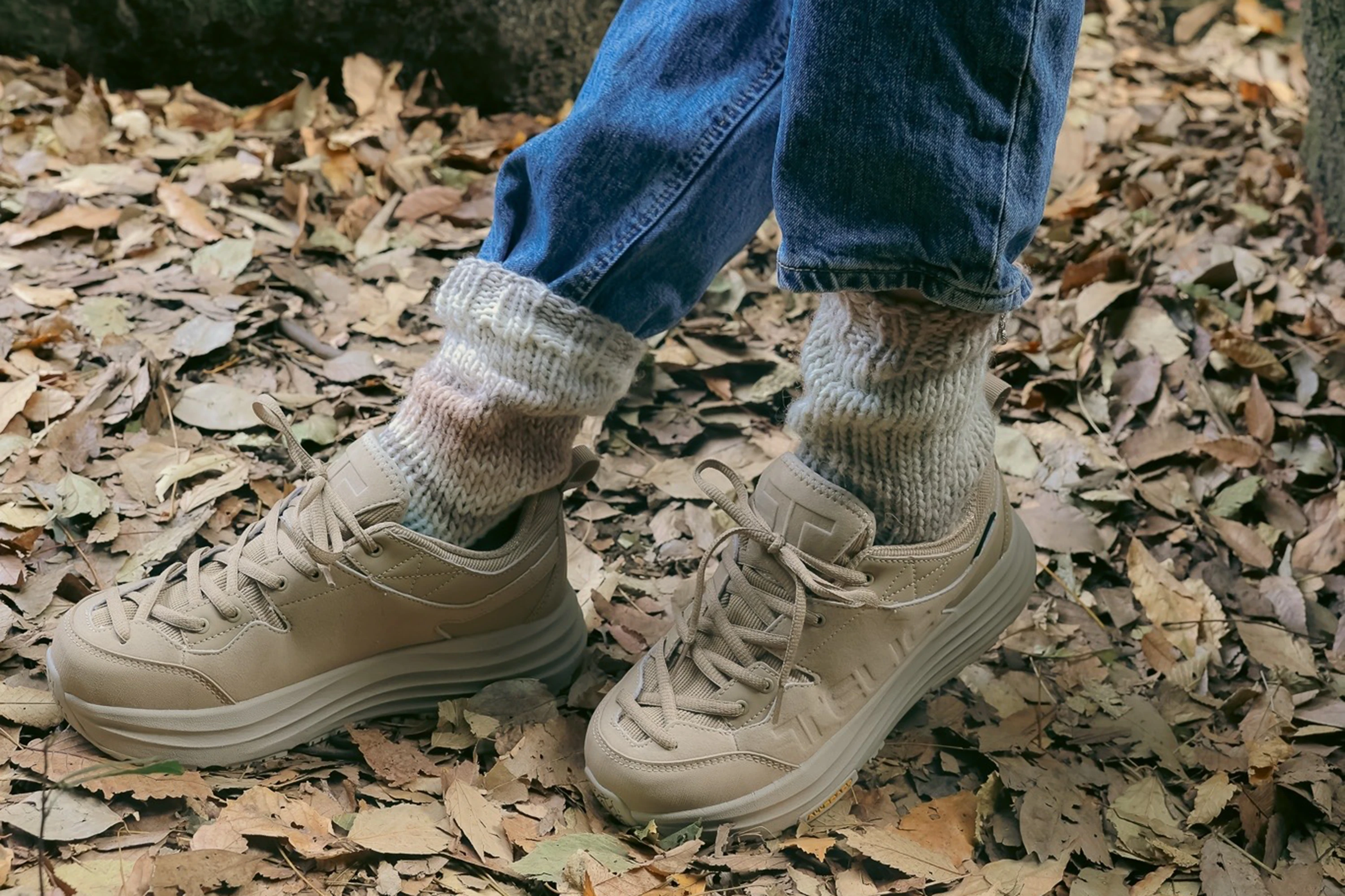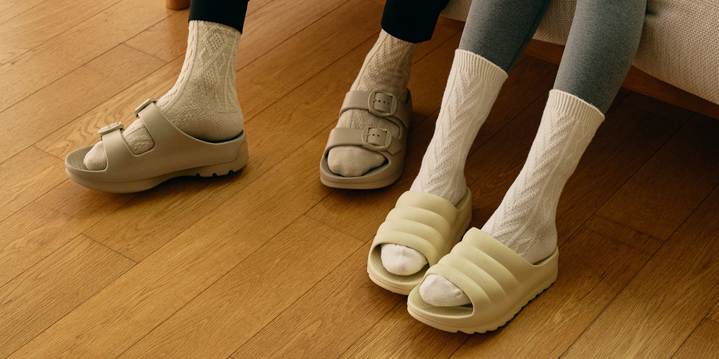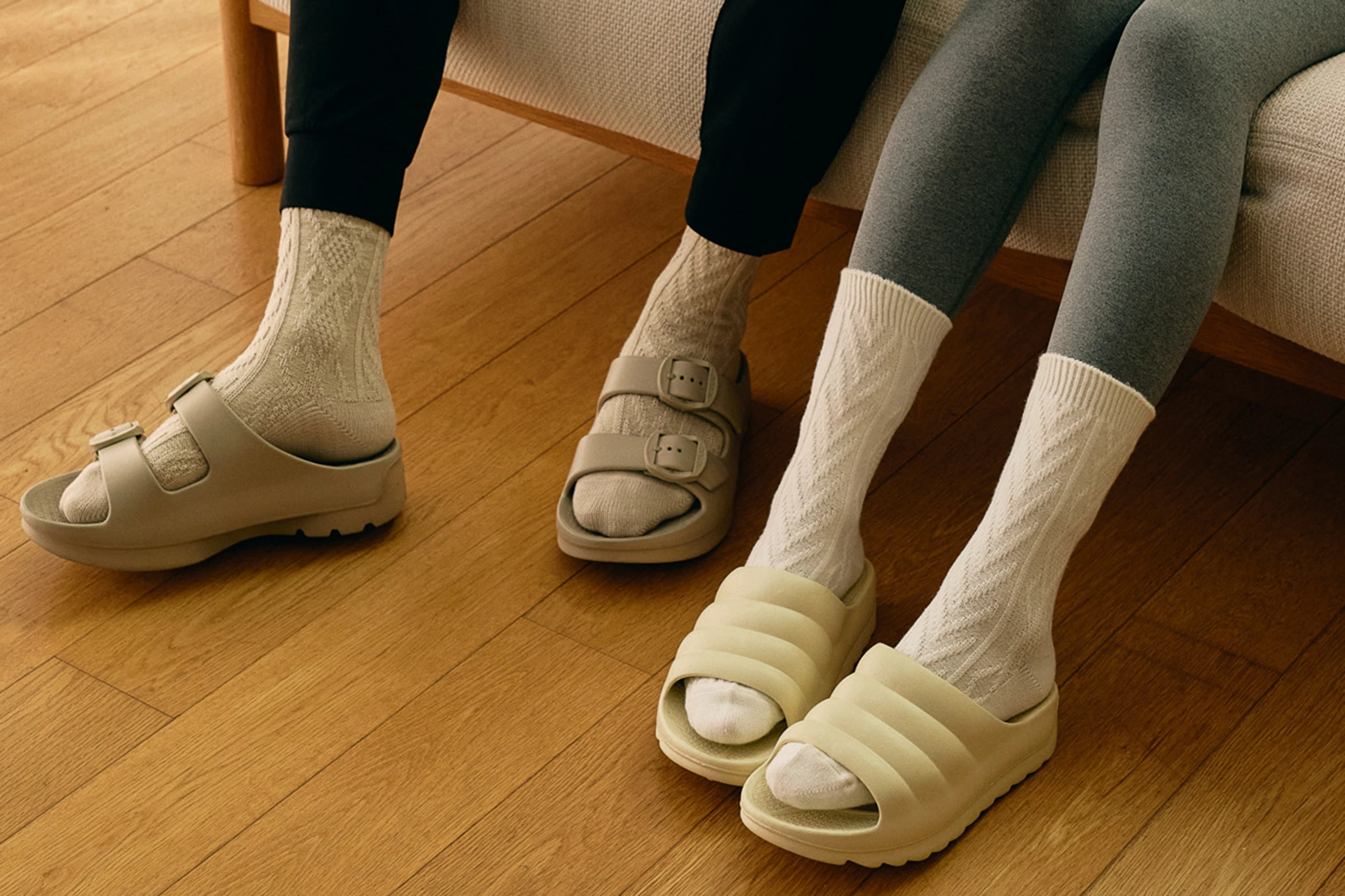 TELICのフットウェアは、軽量でありながらも履いていることを忘れるほどの快適さを提供し、素足に心地よくフィットします。その柔らかい質感が、トレーニングやアクティビティの後に疲れた全身を足元から解放してくれます。