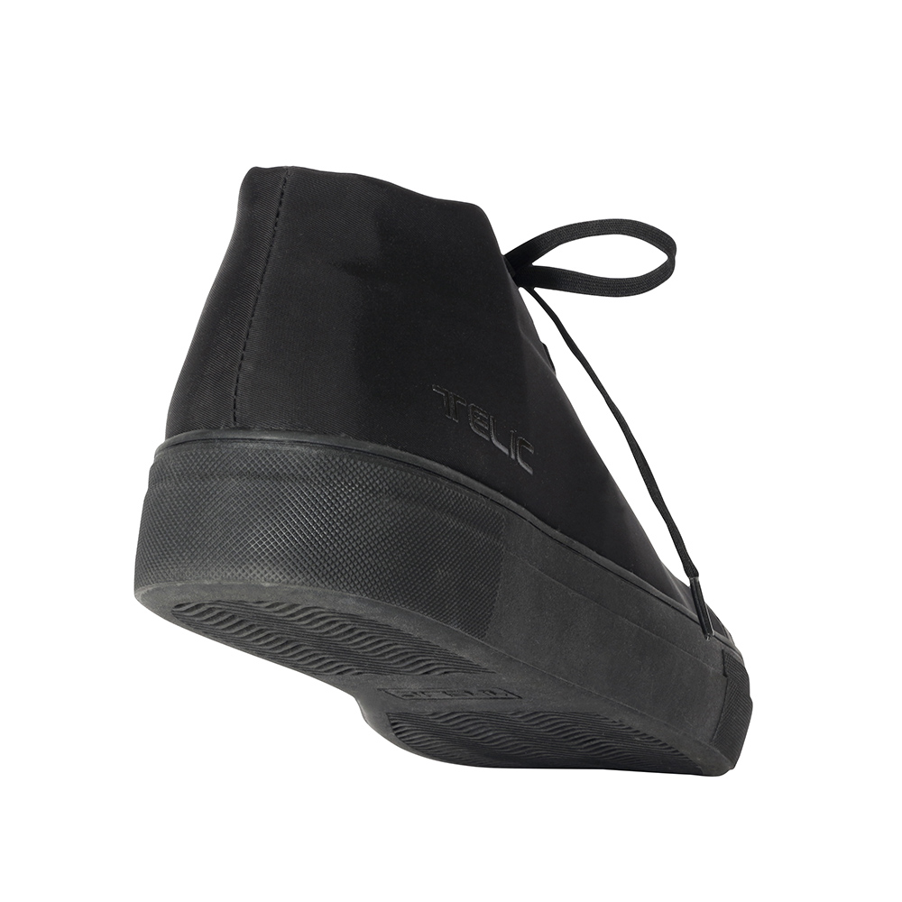 These mid-cut rain shoes are highly water-repellent. The upper is made of nylon and has a clean, simple design that goes well with a suit. The elastic shoelaces make them easy to put on and take off. *Normal shoelaces are included, so please replace them according to your preference. The original sole combines a 3cm thick outsole with a TELIC insole.