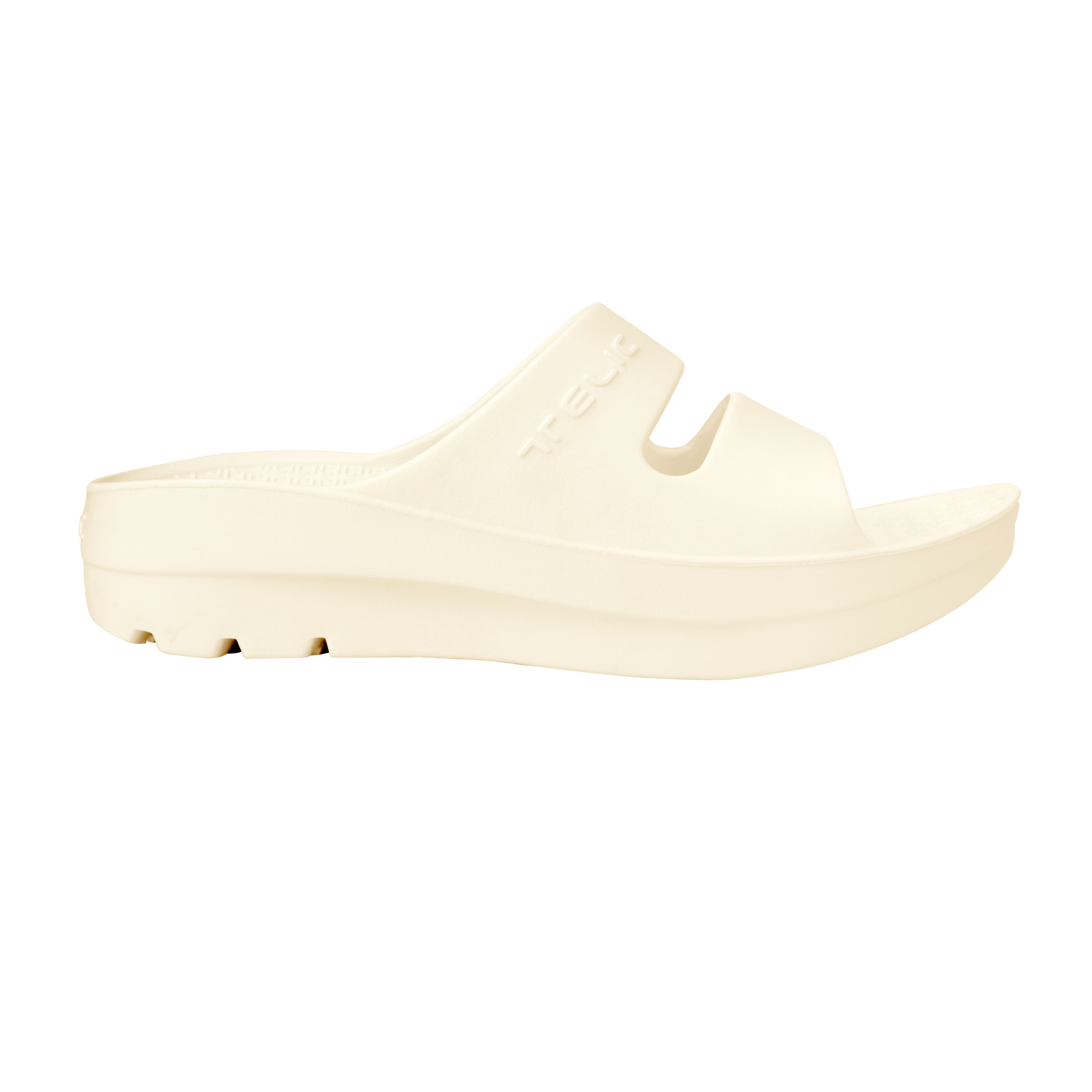 It features a strong double strap and a thick sole. The thick sole combines high cushioning and a trendy design. The gently curved heel wraps around the arch of the foot, providing excellent support.