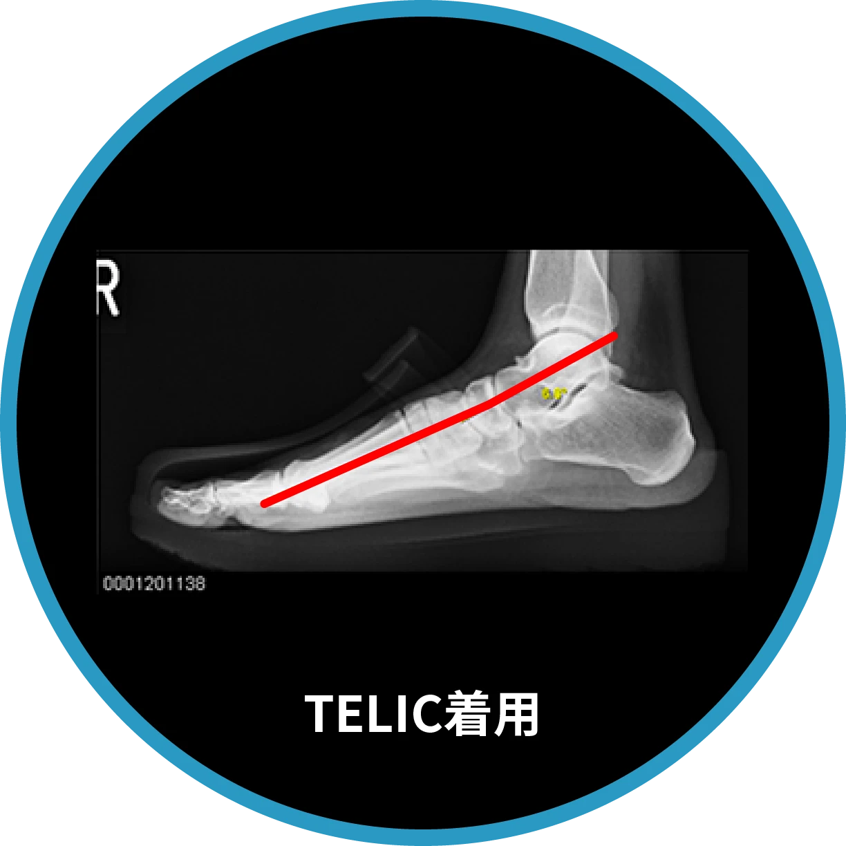 赤い線のメアリーズアングルの角度が増大していることから、しっかりアーチがサポートされていることがわかる。